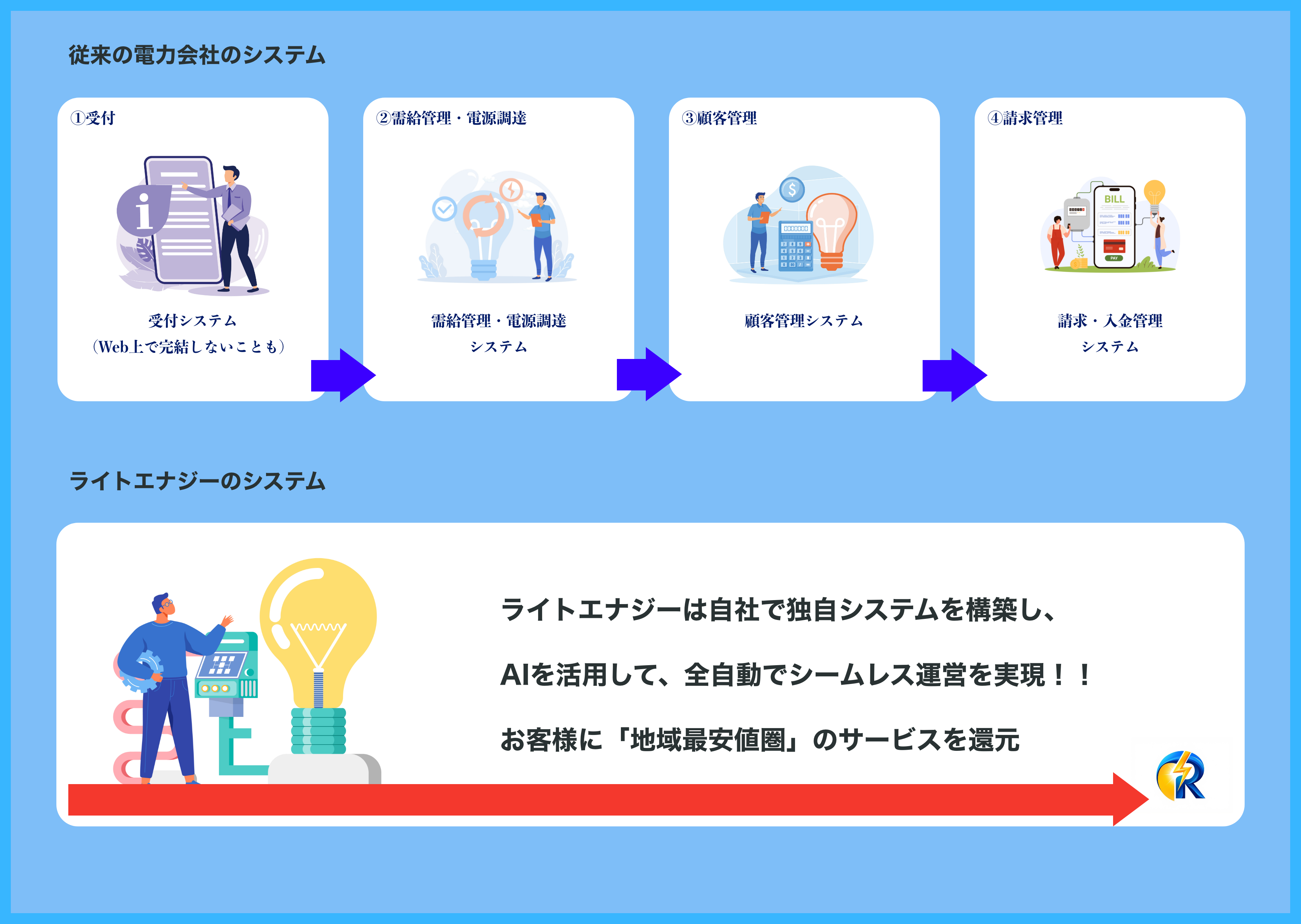 ライトエナジーでは、お申込みからご請求に至るまで自社独自のシステムで
