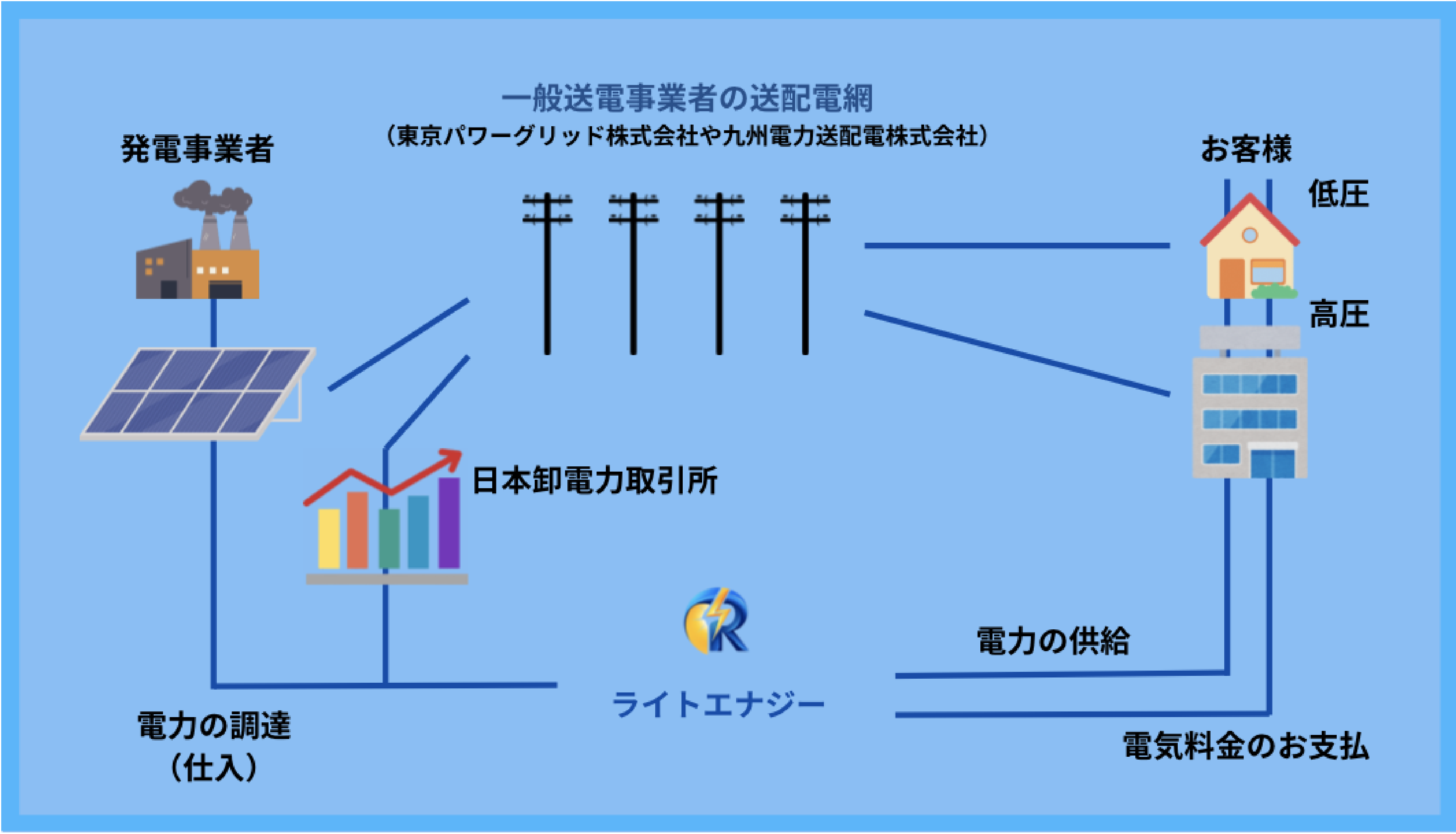 ライトエナジーでご契約いただいても、現在と同じ送配電網を使用して